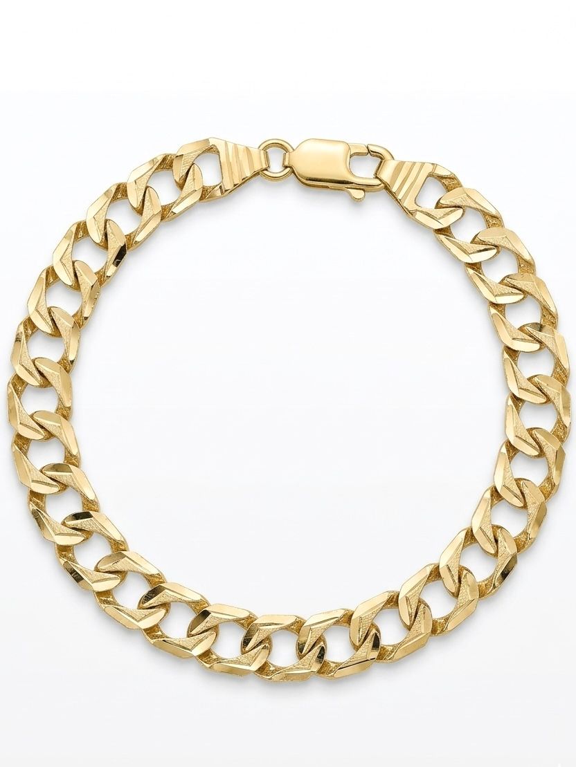 Description: 7MM Diamond-Cut 10KT Yellow Gold 8.5” Bracelet