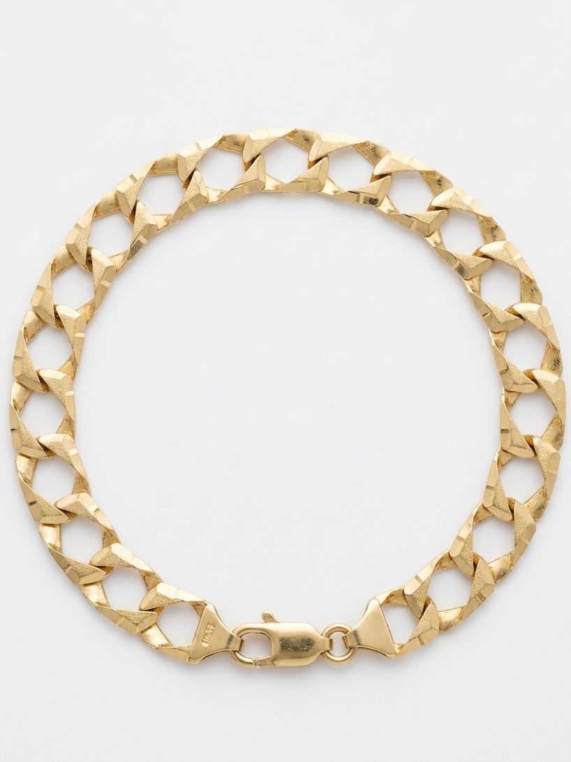 Description: 9MM Diamond-Cut 10KT Yellow Gold 8.75” Bracelet